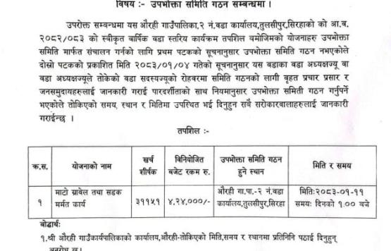 उपभोक्ता समिति गठन सम्बन्धमा |