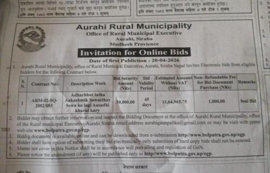 औषधि सर्जिकल समान खरिद सम्बन्धि बोलपत्र आव्हानको सूचना |