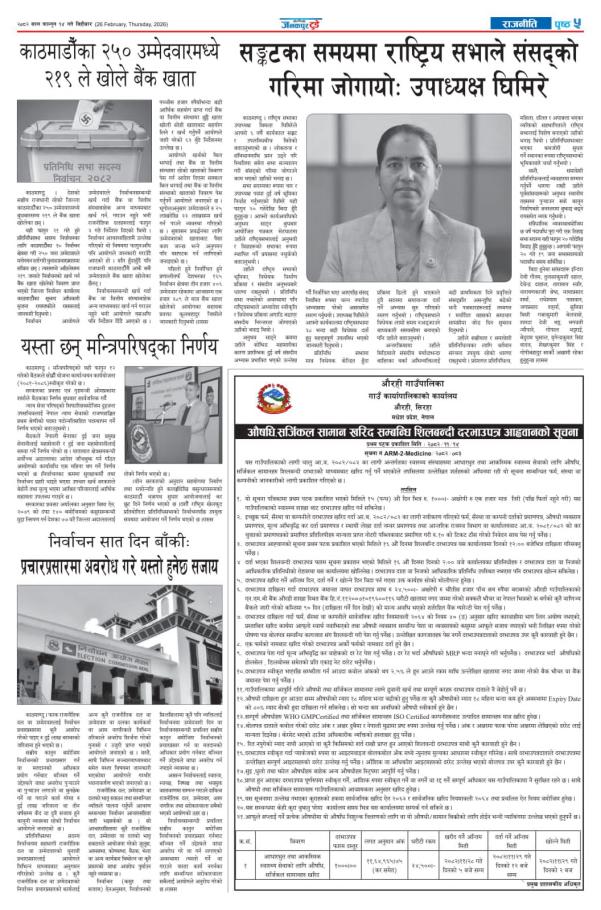 औषधि सर्जिकल समान खरिद सम्बन्धि बोलपत्र आव्हानको सूचना |
